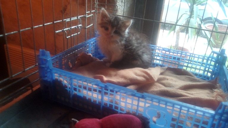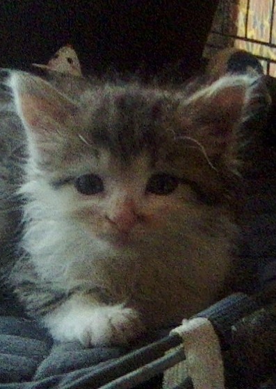 Poils longs, yeux bleus.En Famille d'accueil il sera prêt à rejoindre sa famille d'adoption mi-juillet. (A réserver)