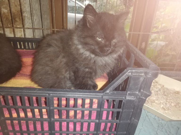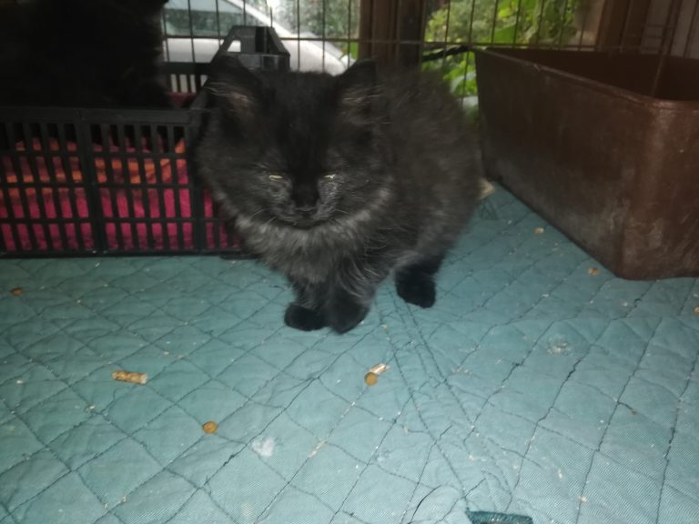 Issue d'une fratrie de 5 petits chatons identiques, joueurs et espiègles comme à leur âge , petites perles noires aux poils touffus.
