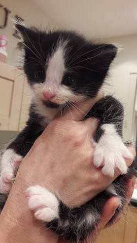 Patapon , petit mâle abandonné chez notre vétérinaire à l'age de 3 semaines