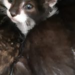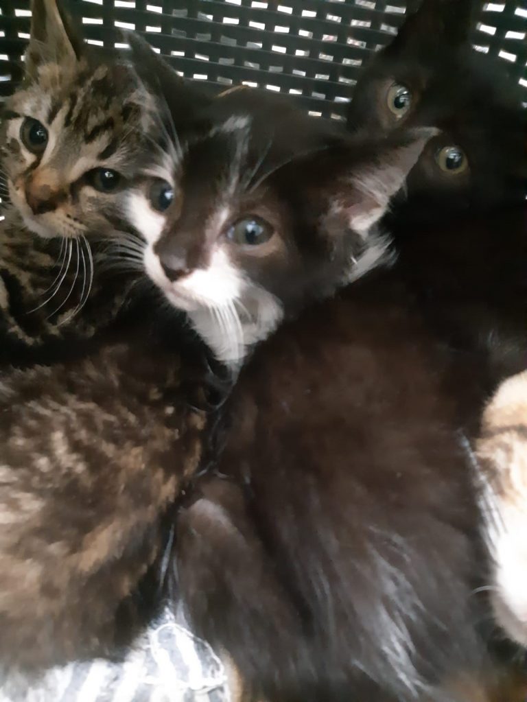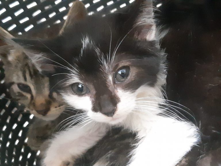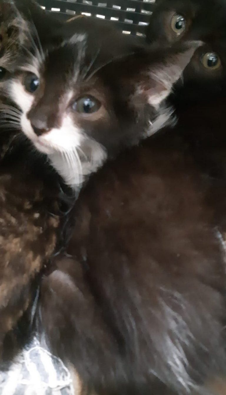 Cette adorable petite chatonne l'a échappé belle , elle est née dans une usine de recyclage de déchets et aurait pu finir au fond d du cuve si un employé lanceur d'alerte ne l'avait pas repérée ainsi que sa maman et sa fratrie.