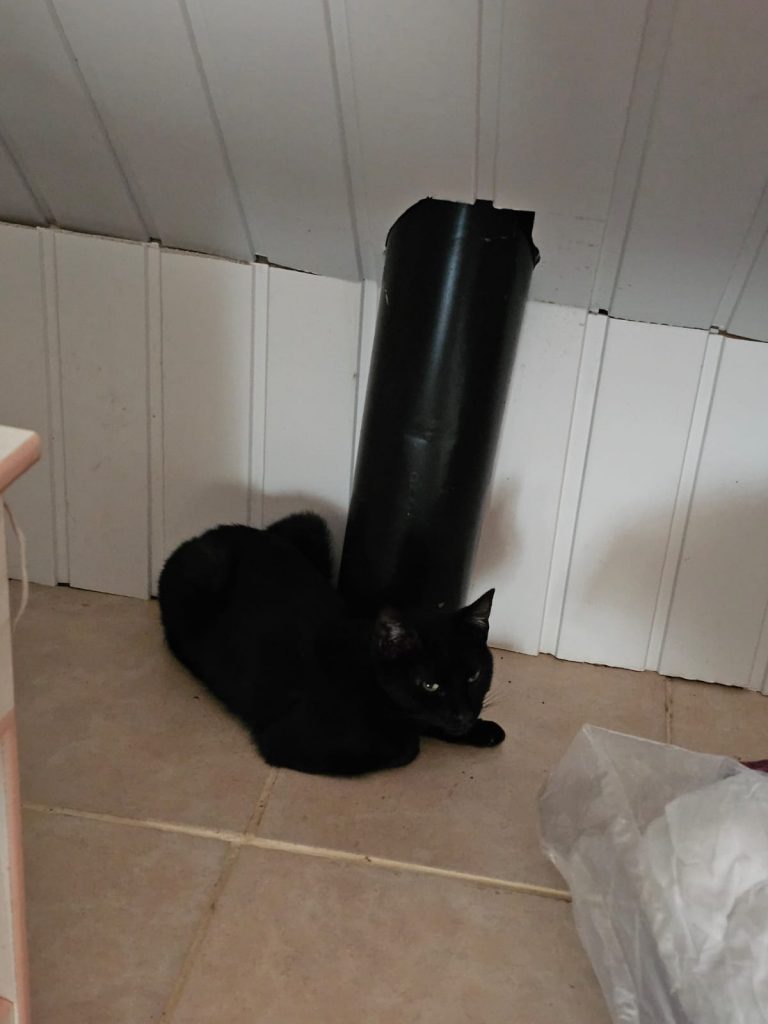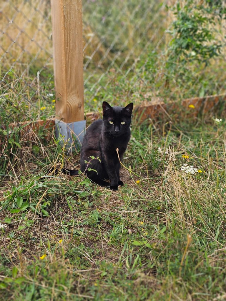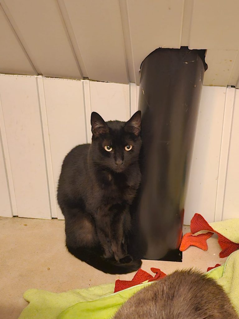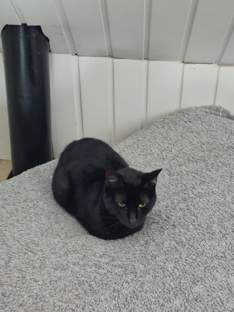 Cette adorable minette de 5 ans se retrouve au refuge car elle n'est pas devenue sociable avec les humains. En revanche elle adore ses copains chats et elle s'amuse beaucoup avec eux ! En hiver elle adore se coller au tuyau du poêle à granulés qui est un peu chaud. En été elle se promène dehors... dans la pelouse.