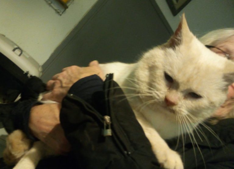 Piopio est un gros pépère qui aurait environ 7 ans. Il a été trouvé dans le jardin de la famille d'accueil par hasard et ne les a plus quitté depuis.