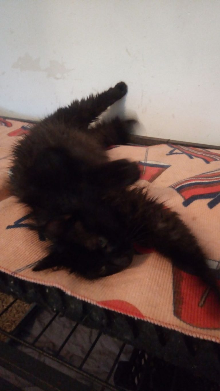 Elle est super caline et se roule par terre de plaisir pendant les séances de câlins.