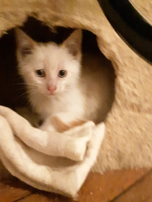 Joueur et câlin, ce petit bonhomme est très bavard et ronronnant. Il a de longue conversation avec son frère et des parties de jeux sans limite. Nous souhaitons les faire adopter ensemble