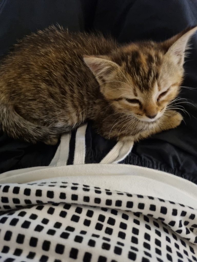 Adorable petit bout de chat ramassé dans une rue parisienne par une personne bienveillante . Il a dû être mis dehors par un irresponsable qui s'en est débarrasser sans état d'âme.