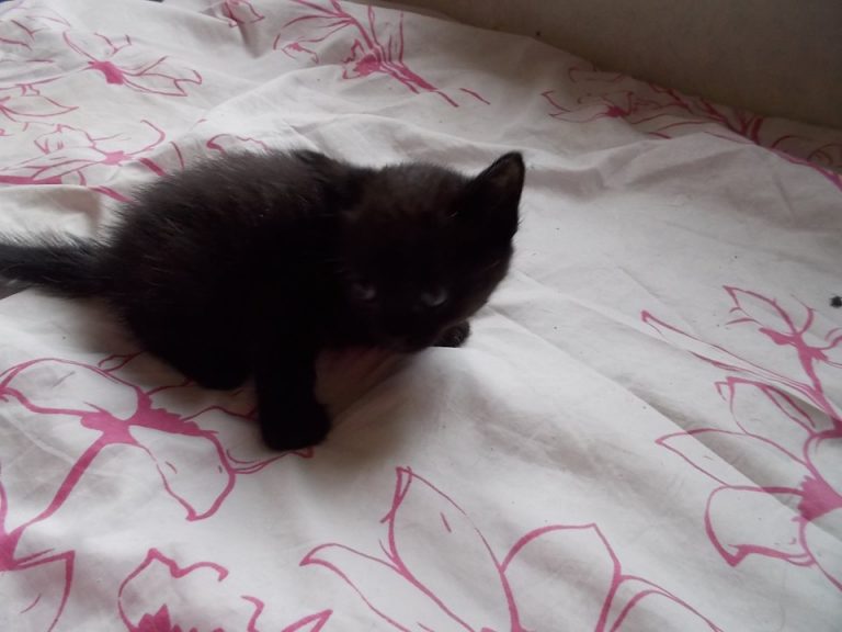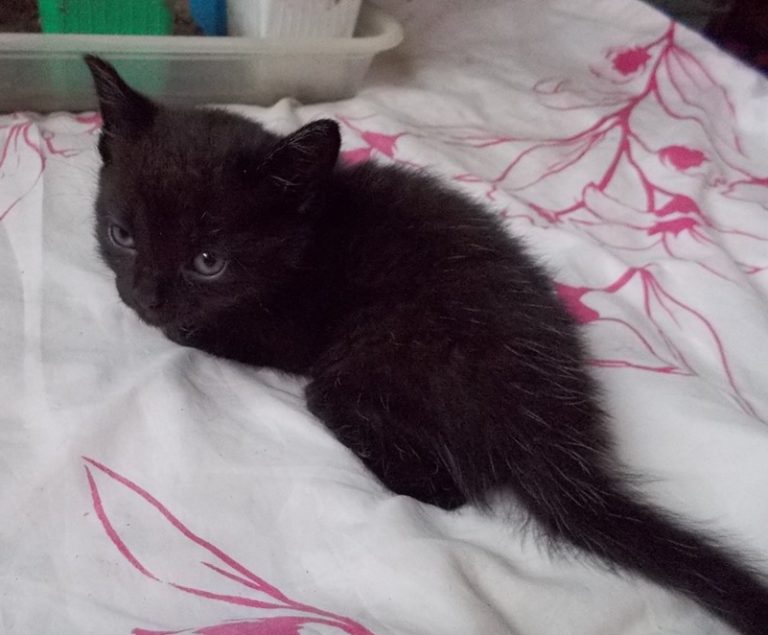Puce appartient à une portée de quatre chattons nés dans un jardin de ville au cœur de Gaillac, la maman ayant été abandonnée un an plus tôt par des personnes ayant quitté le quartier.
