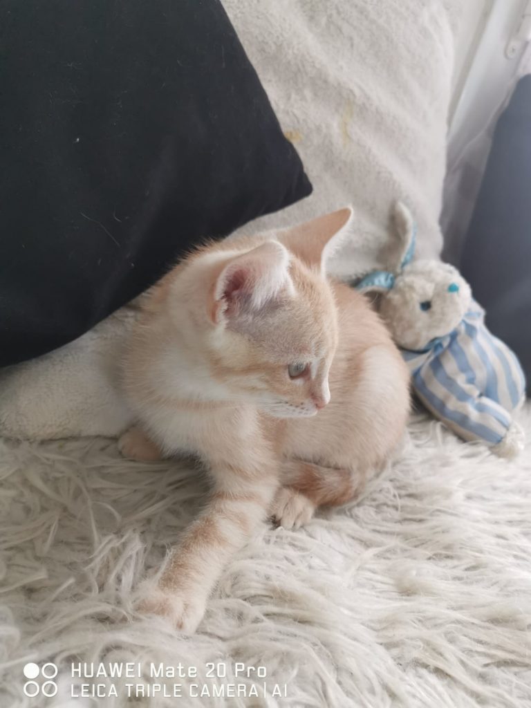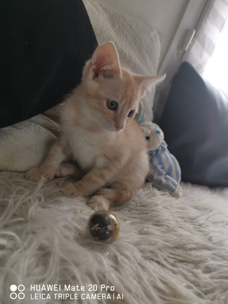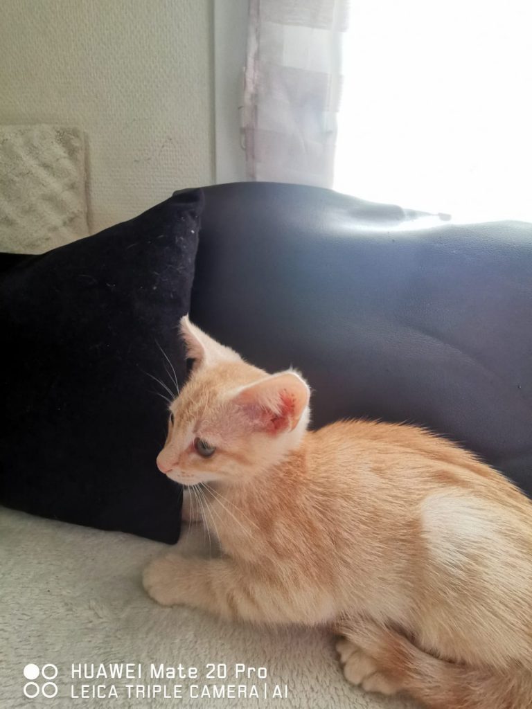 RIDER a mal commencé dans sa jeune vie, il a été abandonné avec son frère et sa sœur, probablement qu'ils devaient commencer à couter cher en nourriture et que les irresponsables de ces naissances n'ont pas trové d'adoptant parmi leurs connaissances. Mais nous les avons récupérés et câlins ,joueurs et ronronneurs comme ils sont , ils ne tarderont pas à trouver de gentilles familles humaines pour la vie
