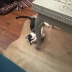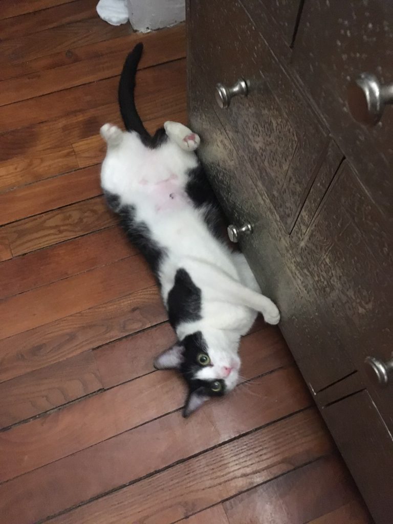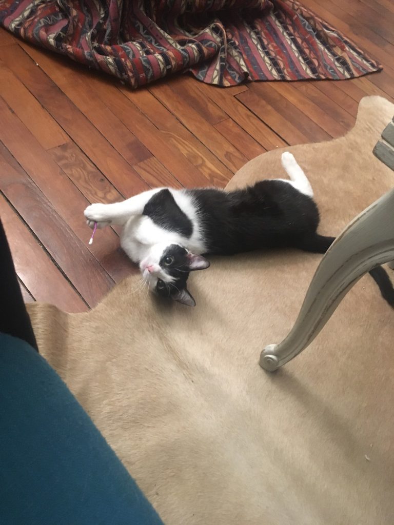 Je suis très gentille, joyeuse et je dégrade rien dans Les appartements même pas votre canapé surtout si vous le donnez un carton à gratter !