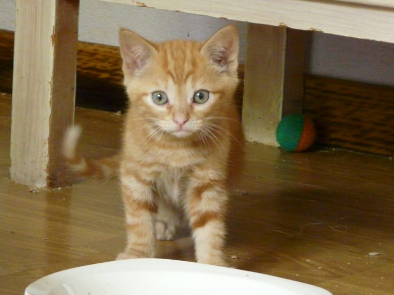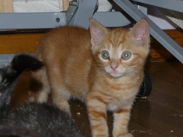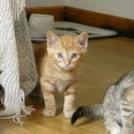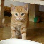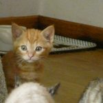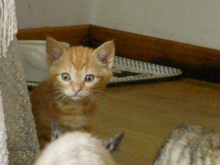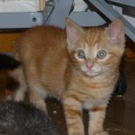 Chat appartenant à une fratrie de cinq chatons, née dans une ancienne ferme où certains locaux sont encore utilisés pour un élevage de bovins. Des locataires ont pris en charge la maman au moment de sa grossesse et les bébés jusqu'à l'age de deux mois. La présence d'un renard a rendu obligatoire la prise en charge des bébés par une famille d'accueil.