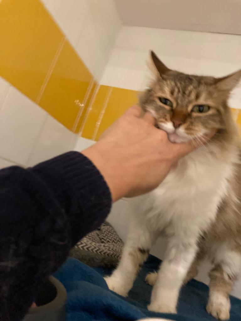 Cette adorable minette a été sauvée de la maltraitance ? Elle n'en tient pas rigueur aux humains et elle est tout à fait charmante , douce et câline et toujours en manque d’attention,