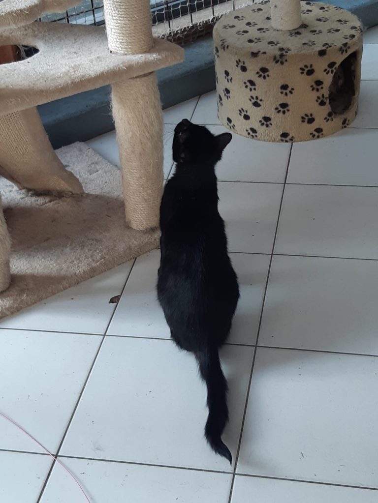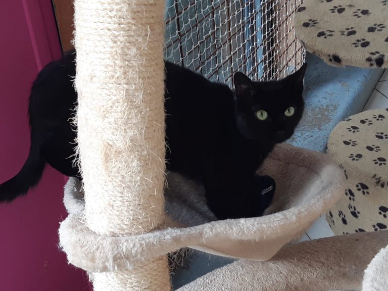 Petite minette calme et câline, un peu réservée mais pas peureuse. Elle a besoin d'un contexte calme et harmonieux et un copain chat serait un plus.