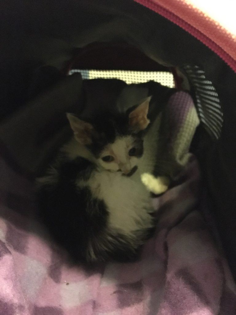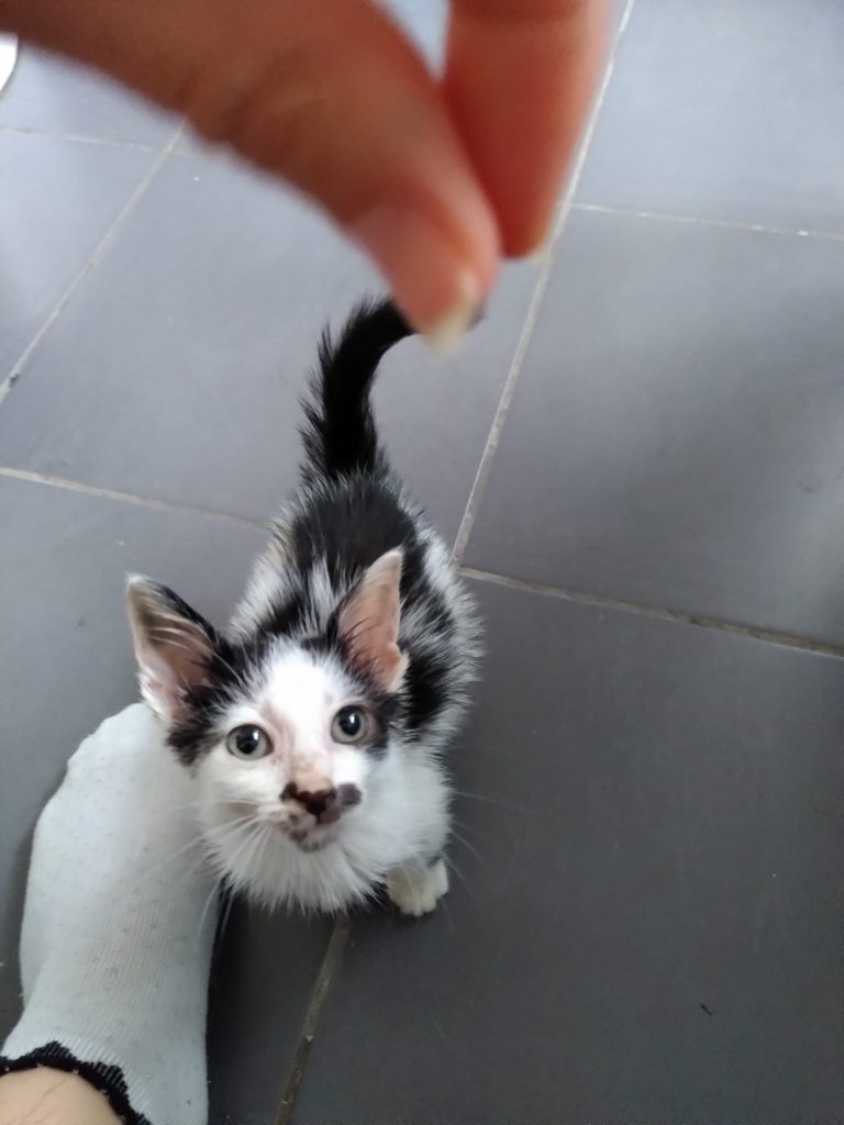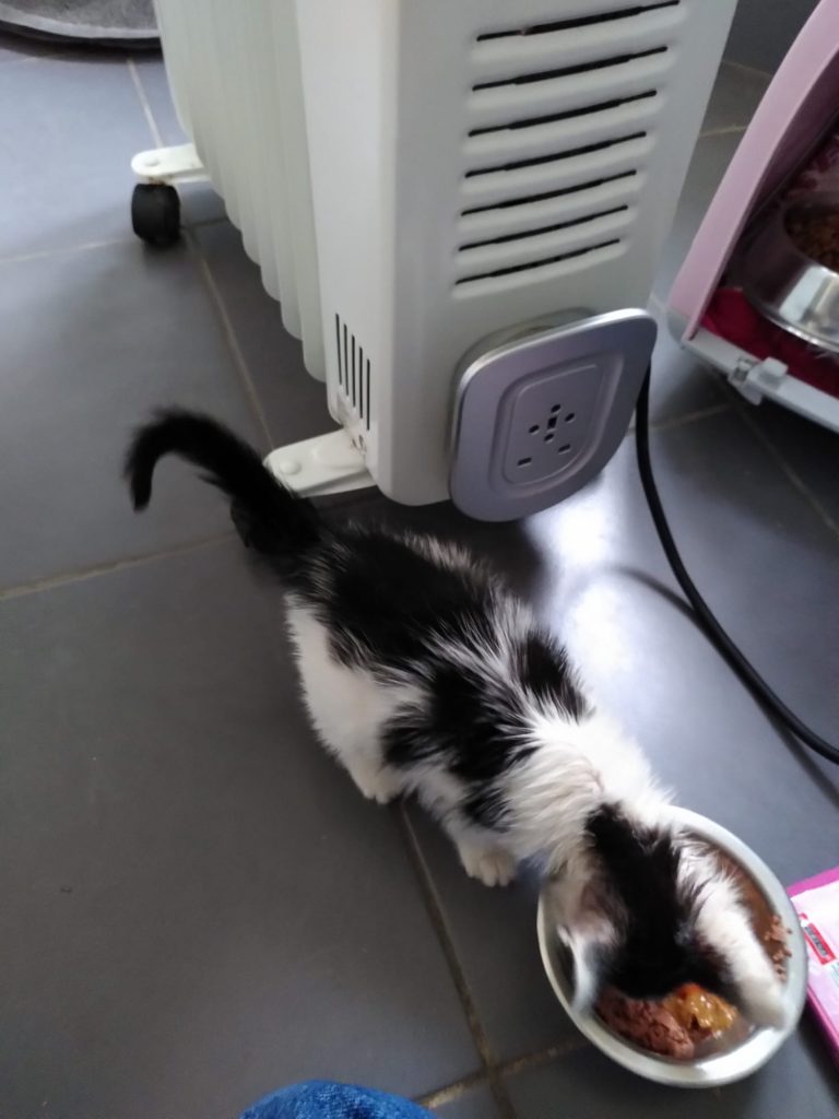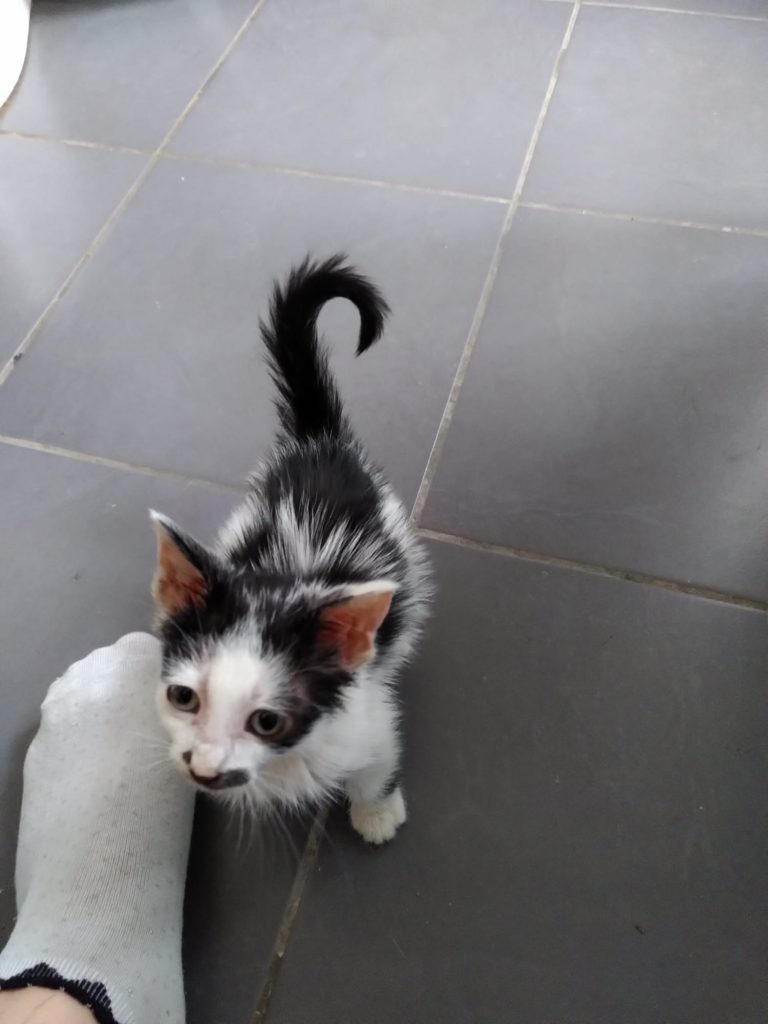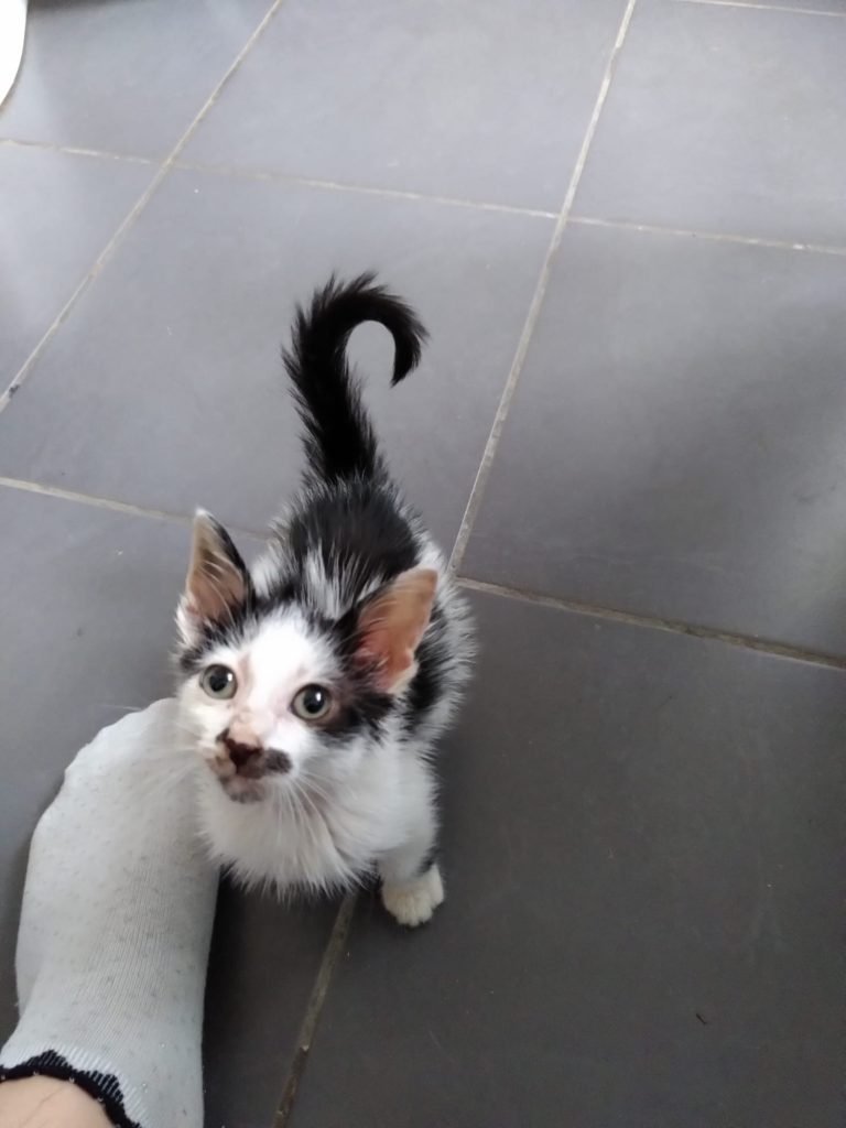Ce tout petit loulou a été trouvé tout seul sur un parking probablement déposé par une main irresponsable . Il n'avait aucune chance de survie si une personne bienveillante ne lui avait porter attention. Aujourd'hui bien au chaud dans sa famille d'accueil , il commence à vivre comme un vrai chaton de son age partagé entre jouer , dormir et ronronner.Vous pouvez le rencontrer dans sa famille d'accueil
