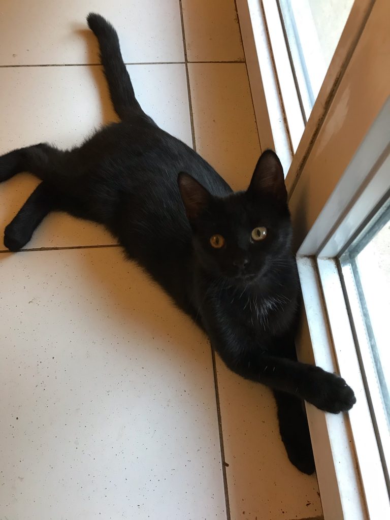 Gentille mimine déposée avec sa fratrie dans le jardin d'une gentille personne qui les a mis à l'abri du danger. Câlin et joueur
