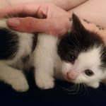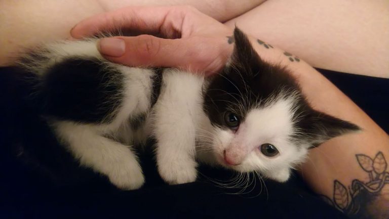 Cette petite puce et câline un peu craintive qui se rassure vite une fois dans les bras