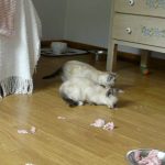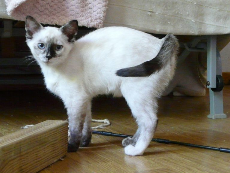 SIAM est une chatte très douce mais qui est restée très réservée les premières semaines. Elle a commencée à s'habituer à la présence humaine au bout d'une dizaine de jours. Depuis début juin, elle accepte les câlins et depuis mi-juin, elle est devenue très câline.