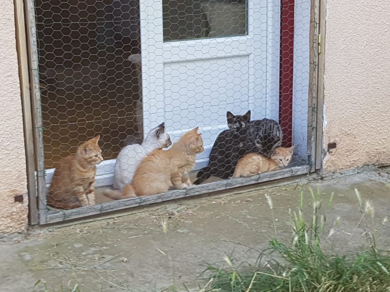 Chat appartenant à une fratrie de cinq chatons, née dans une ancienne ferme où certains locaux sont encore utilisés pour un élevage de bovins. Des locataires ont pris en charge la maman au moment de sa grossesse et les bébés jusqu'à l'age de deux mois. La présence d'un renard a rendu obligatoire la prise en charge des bébés par une famille d'accueil.
