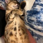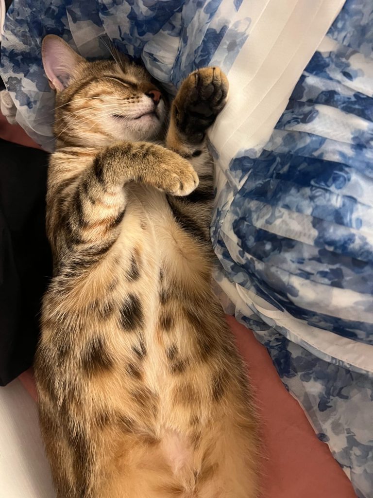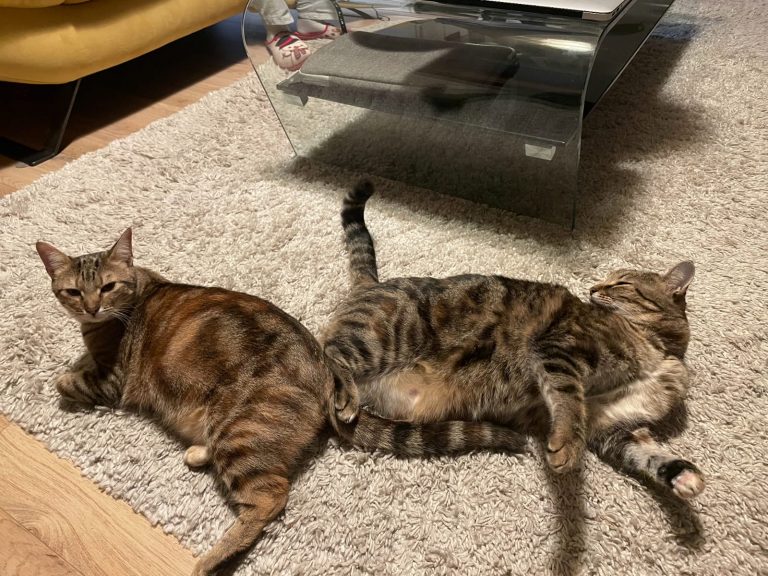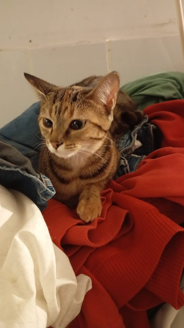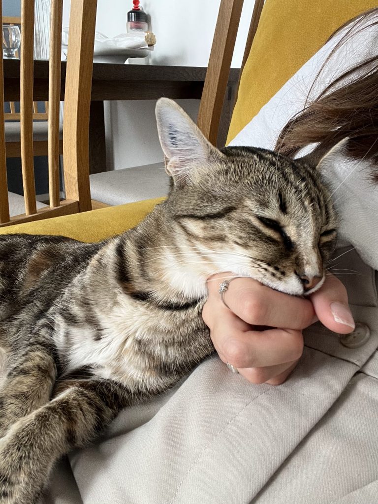 VROOM , plutôt grise est de nature plus calme et pataude, très câline aussi , elle viendra s'allonger près de vous facilement . Son nom n'est pas un hasard, elle ronronne comme un moteur.