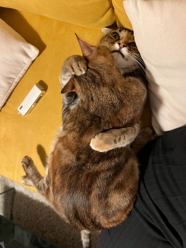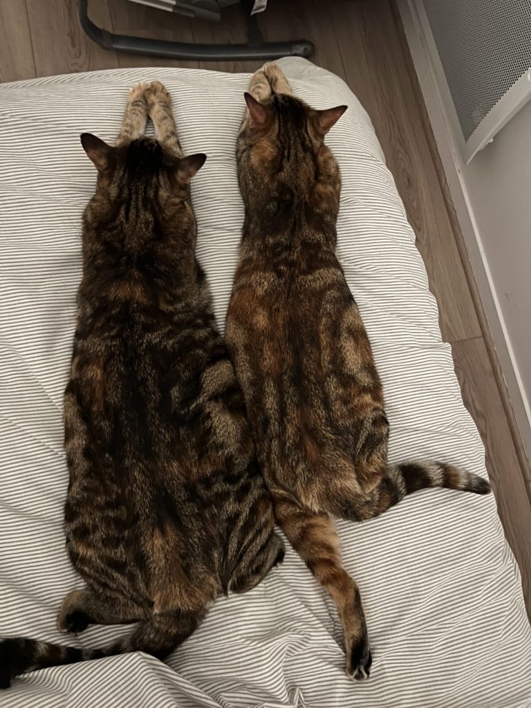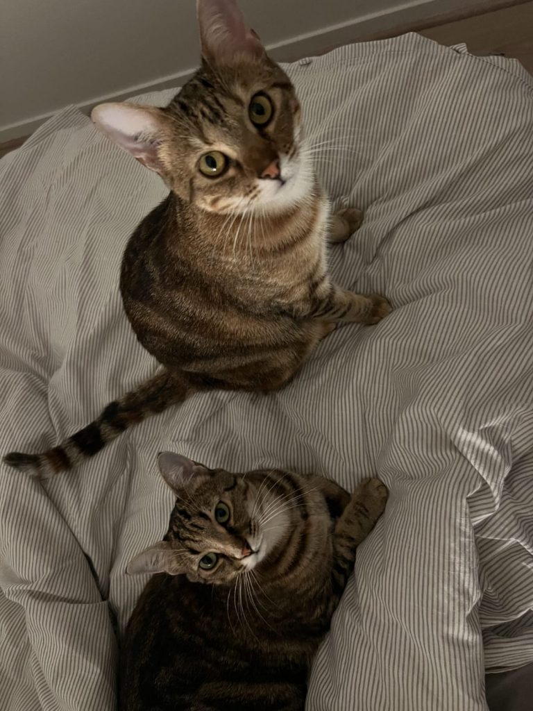 SIMONE plutôt marron est très curieuse et très caline . Elle viendra toujours réclamer une petite sieste sous les caresses de qui le veut bien . Elle a son petit caractère de chipie qui lui fait prendre l'ascendant sur sa sœur lors des jeux .