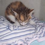 Adorable chatonne joueuse et câline sauvée d'un avenir incertain et qui attend sa famille pour la vie qu'elle saura égayer de ses pitreries .Ielle pourra la rejoindre courant juillet.