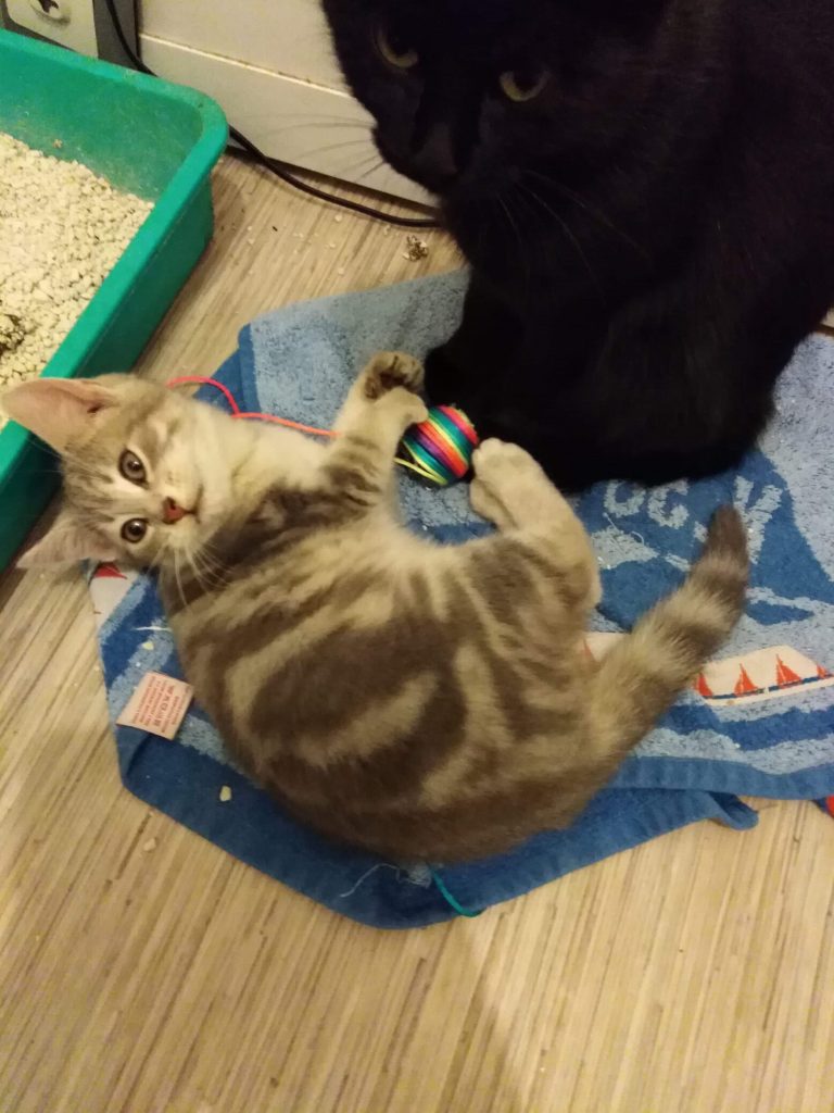 Adorable petite minette de 3 mois déjà abandonnée à son triste sort et récupérée par une personne attentive à la misère animale .