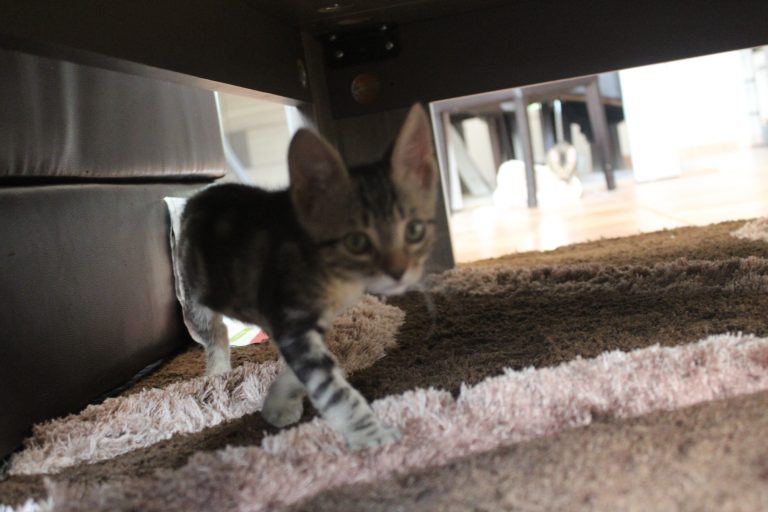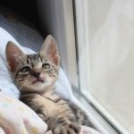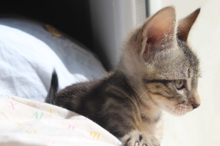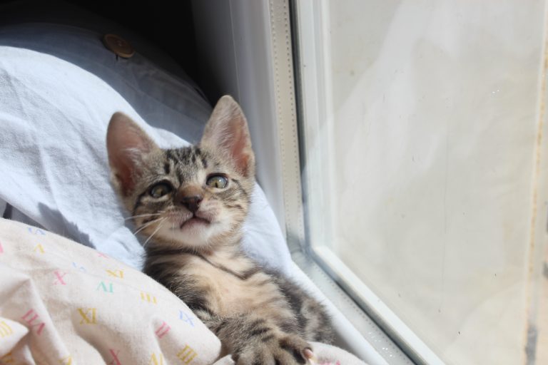 Téméraire de son petit surnom Témé est un jeune chaton mâle d'un peu plus de deux mois en bonne santé, il grandit avec ses sœurs dans sa famille d’accueil ou ils ont été biberonner.