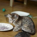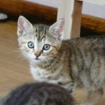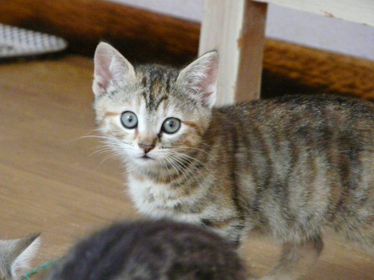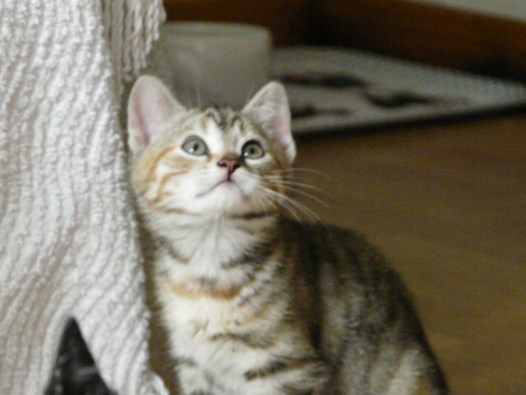 Chat appartenant à une fratrie de cinq chatons, née dans une ancienne ferme où certains locaux sont encore utilisés pour un élevage de bovins. Des locataires ont pris en charge la maman au moment de sa grossesse et les bébés jusqu'à l'age de deux mois. La présence d'un renard a rendu obligatoire la prise en charge des bébés par une famille d'accueil.