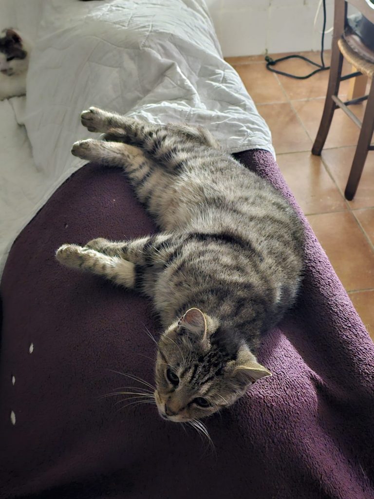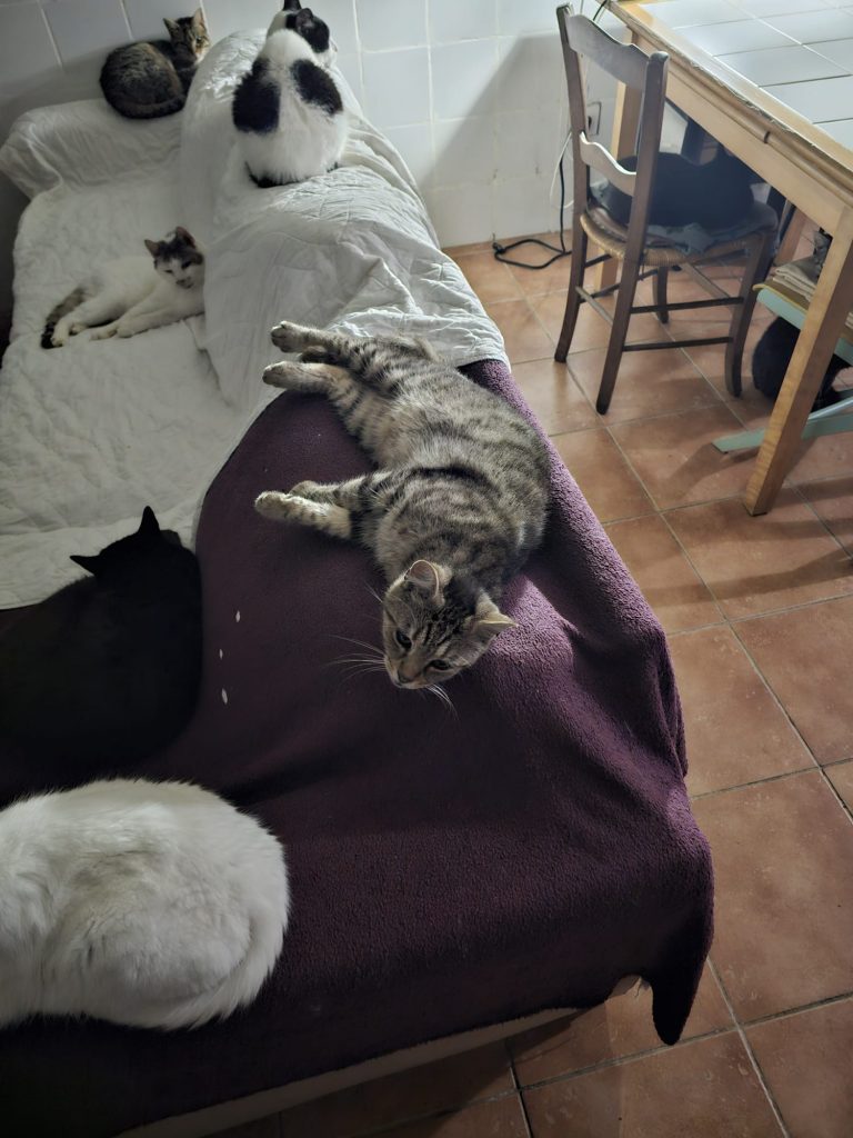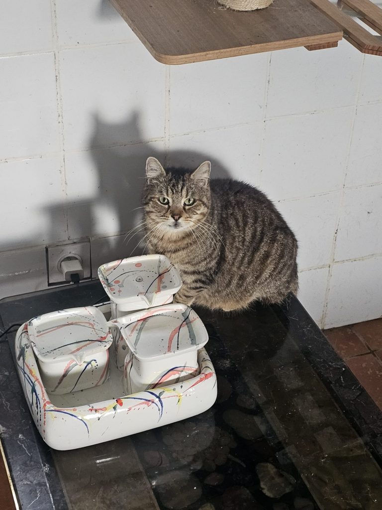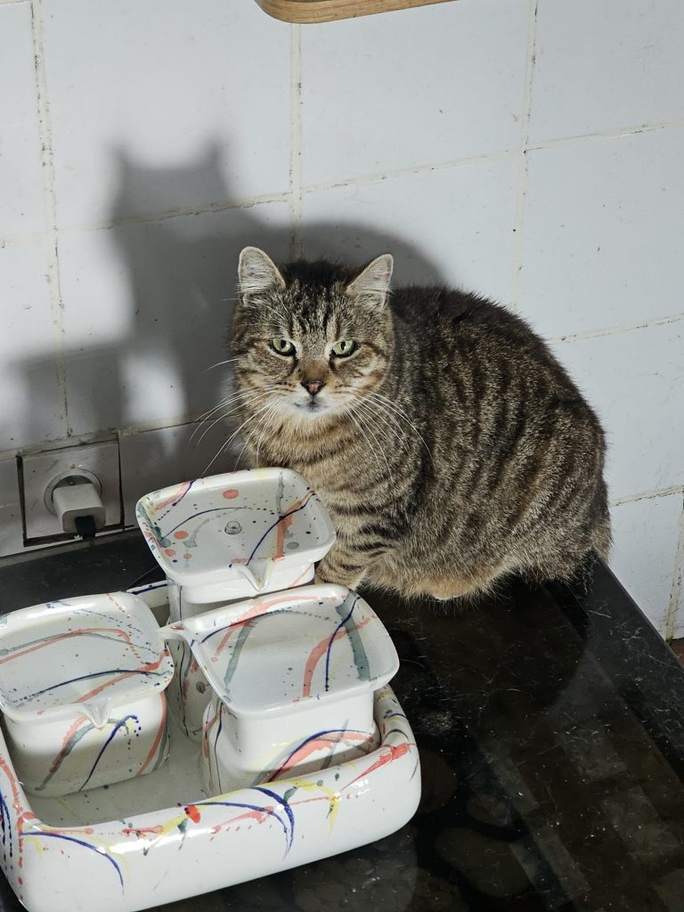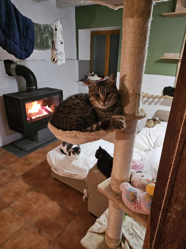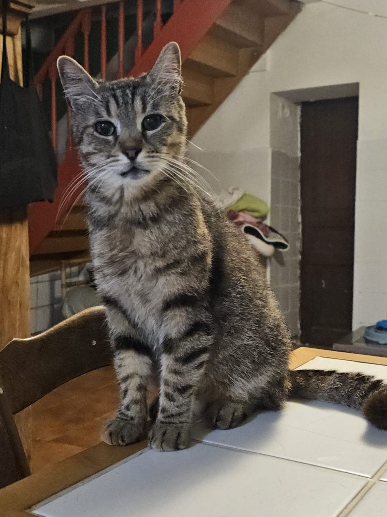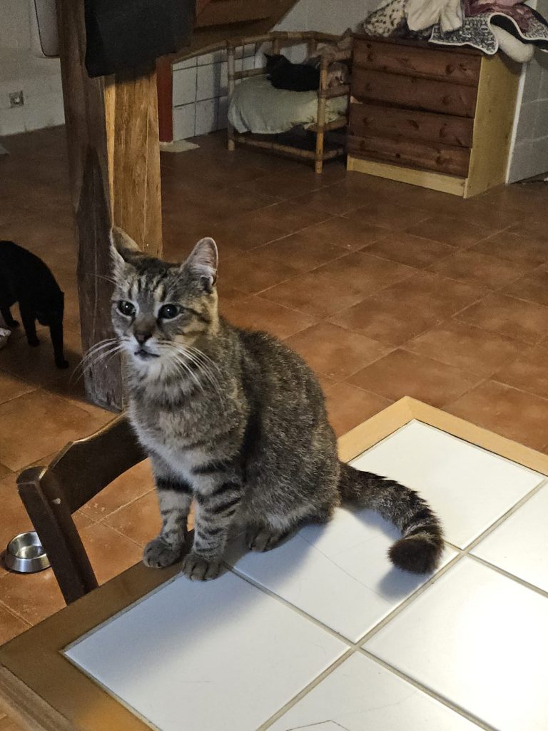 Il a vient d'avoir 11 ans et se porte très bien malgré sa positivité au FIV ! Il est très coquin et aime bien embêter ses camarades parfois, mais il a aussi beaucoup d'amis. Il est très beau maintenant et cela fait un an qu'il vit au Sanctuaire. Il a eu le temps de prendre quelques kilos comme vous pouvez le constater sur les photos...