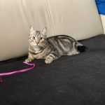 Jouer avec lui lui permet d’évoluer dans le bon sens avec l’humain et sa présence. Il aime bien jouer avec sa famille d’accueil avec des plumes, des rubans, des balles.