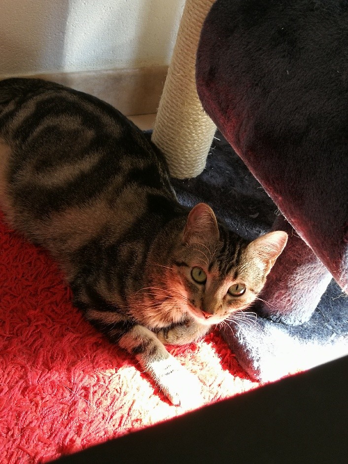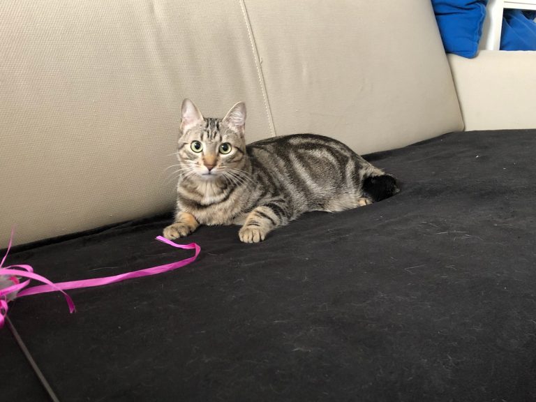 Toru a environ un an et c’est un ancien petit chat sauvage. Il a été trappé dans le Sud et il est possible qu’il ai toujours vécu dans la rue car il n‘est pas encore bien sociabilisé.