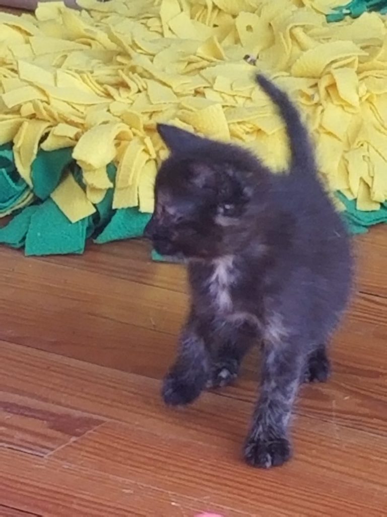 VANUATU est un gentil petit chaton élevé par sa maman avec sa fratrie , très dynamique et joueur , ce petit garnement pourra rejoindre sa famille humaine vers la fin du mois d'octobre .