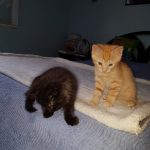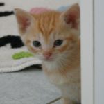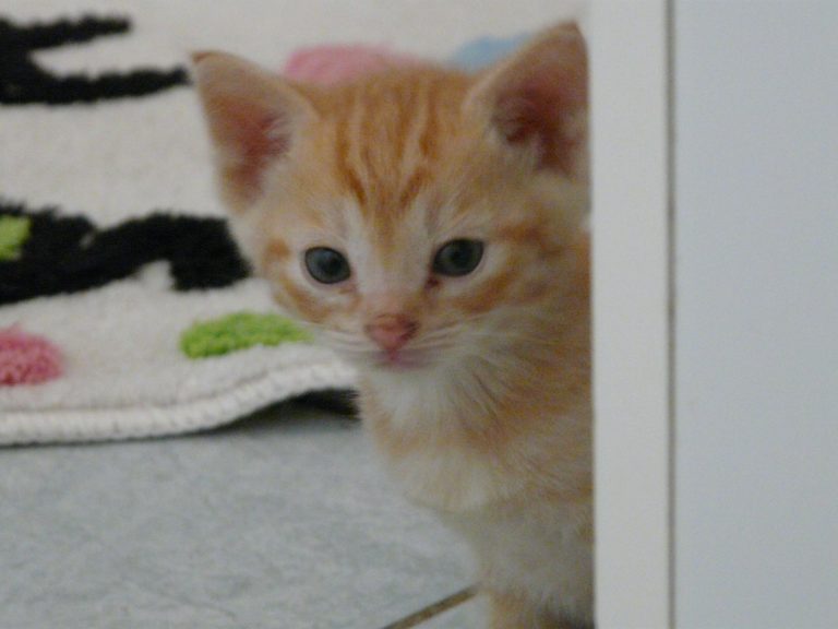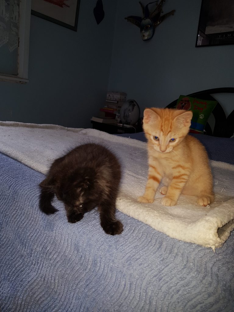 Chat appartenant à une fratrie de trois chatons, née dans une ancienne ferme où certains locaux sont encore utilisés pour un élevage de bovins. Des locataires ont pris en charge la maman au moment de sa grossesse et les bébés jusqu'à l'age de quatre semaines (au moment du décès de la maman, renversée par une voiture).