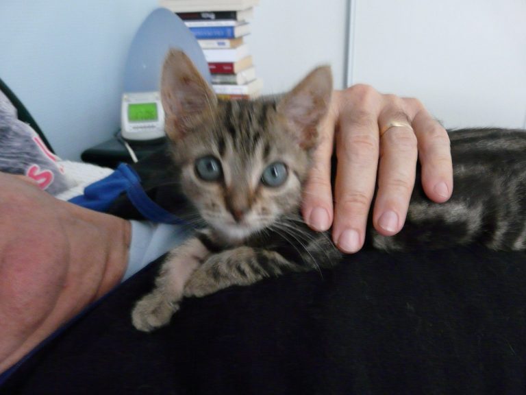 C'est un petit chat adorable, très imprégné par l'humain. Il a une totale confiance en l'homme, ce qui n'est pas toujours une bonne chose...