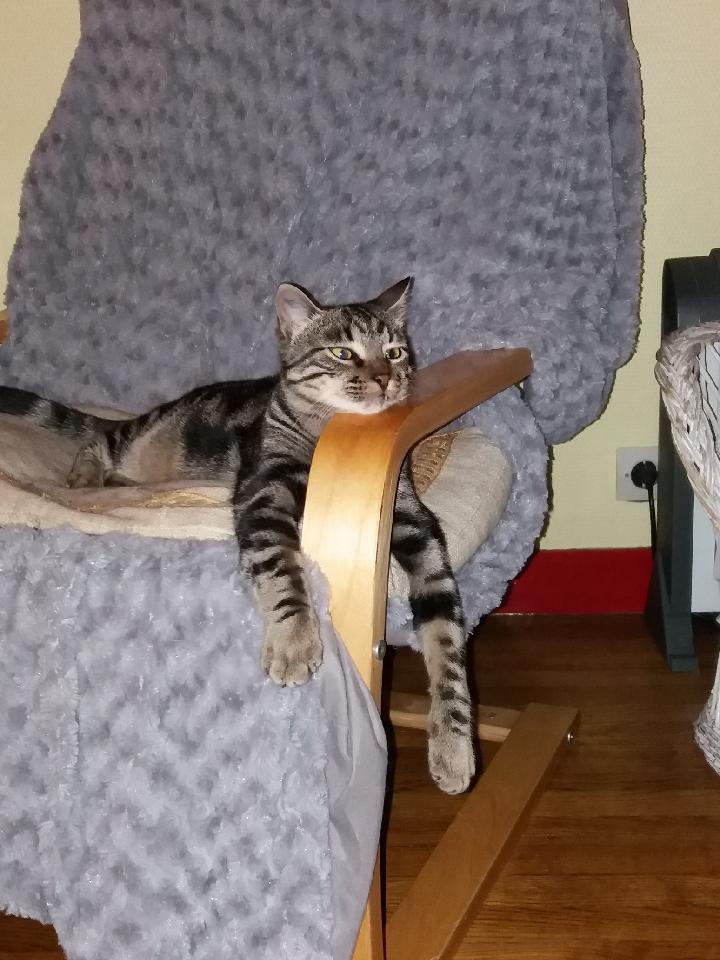 Donc c est un chaton adorable très très timide au début mais un vrai fusionnel une fois en confiance. Il dort avec moi ou reste sagement dans le salon. Très intelligent, il apprend vraiment vite les règles. Il est aussi Très joueur (il ne met plus les griffes) et à l aise avec les autres chats du coup (qq petites roustes de chat rouge mais elle jouait quand même avec c était plus pour le calmer) j ai aussi decouvert que c était un chat "d épaules", il aime bien s installer dessus et ronronner. Enfin, c est un petit bavard, et il est évidemment très propre.