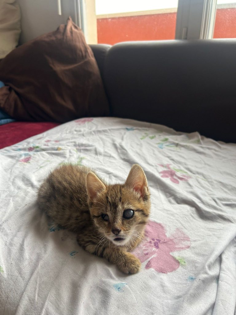 Ces loulous sont issus d'une fratrie de 3 bébés sauvée du danger avec leur maman par une jeune fille bienveillante . Un des petit, la petite fille ²ZIA a une conjonctivite non soignée qui lui a fait perdre un œil et l'autre est abimé mais en soin , suivi par notre ophtalmologiste .Ca ne l’empêche aucunement de vivre et jouer normalement avec une formidable faculté d'adaptation à son environnement Hormis ça tout va bien